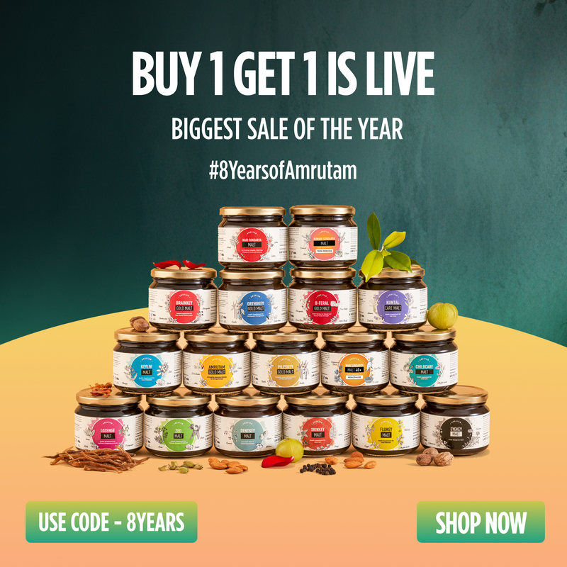 2. Sale code 8YEARS is valid on both the Amrutam Website and App