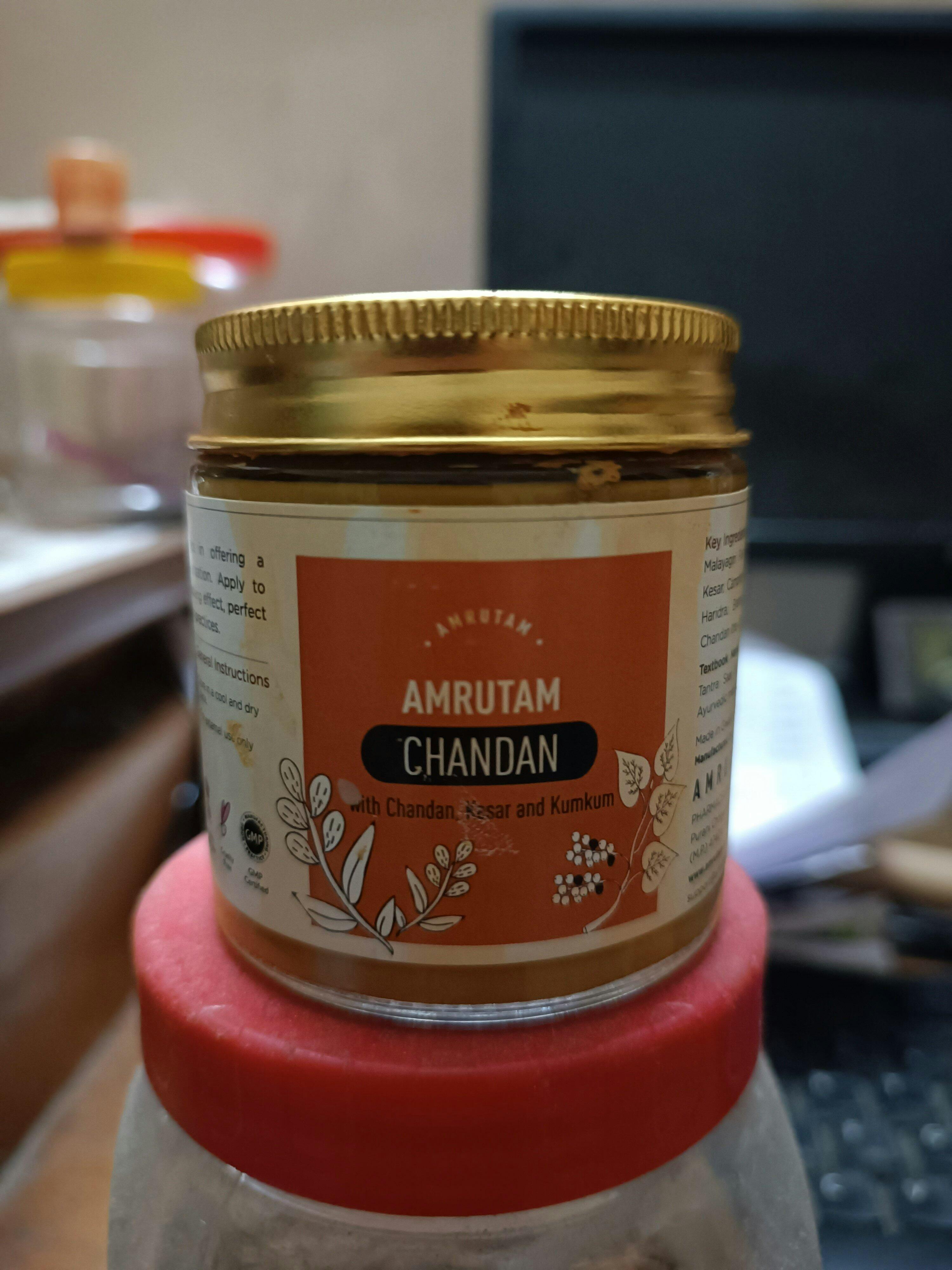 Amrutam Chandan is an authentic Ayurvedic recipe filled with the richness of Sandalwood, Kesar and Rose Attar. This potent blend calms the nervous system and re-activates the minor chakras of our body. It can also be used during religious rites and pujas. 🪔✨