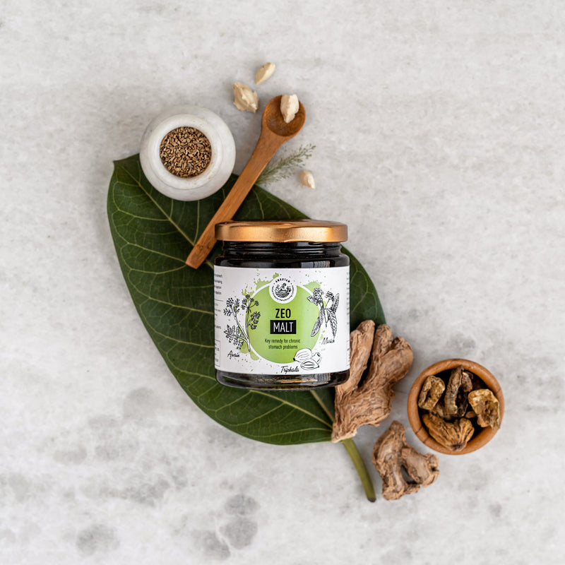 Amrutam Zeo Malt is a medicinal herbal jam that helps you through various stomach issues due to the increase in acidity and decrease in the stomach’s pH balance.